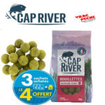 Composition des Bouillettes Monster Crab : Farine de maïs, Semoule de blé dur, Farine de soja toasté, Eau, Œuf entier en poudre, Farine de soja gras, Farine de thon, Protéines solubles de poissons en poudre, Aliment complémentaire d’allaitement pour veau, Micro pellet, Farine de calamar, sel, Farine de levure de bière, Poudre de blanc d’œuf de volaille, Huile de saumon, Arôme Monster Crab Cap River.