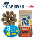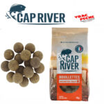 Composition des Bouillettes Monster Crab : Farine de maïs, Semoule de blé dur, Farine de soja toasté, Eau, Œuf entier en poudre, Farine de soja gras, Farine de thon, Protéines solubles de poissons en poudre, Aliment complémentaire d’allaitement pour veau, Micro pellet, Farine de calamar, sel, Farine de levure de bière, Poudre de blanc d’œuf de volaille, Huile de saumon, Arôme Monster Crab Cap River.
