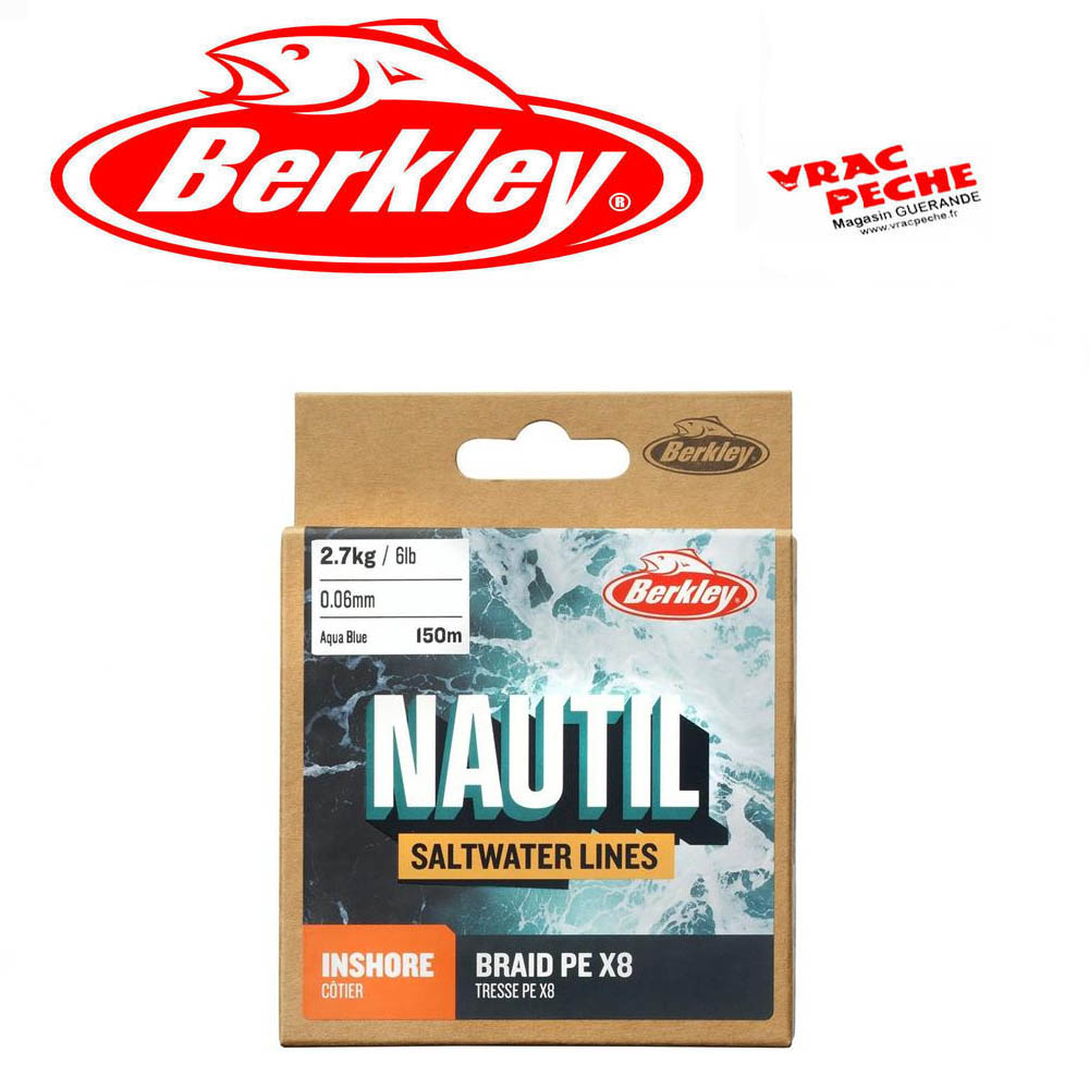 Les tresses Berkley NAUTIL ont été spécialement conçues pour la pêche en mer. Notre équipe de pêcheurs spécialisés dans de multiples disciplines a développé un cœur de gamme de lignes de pêche pour toutes les mers européennes. Peu importe si vous pratiquez le surfcasting sur les plages d'Espagne pour la dorade ou la pêche au leurre sur le littoral de la Bretagne française pour le bar. Berkley NAUTIL Saltwater Lines vous offrira toujours la confiance et la qualité que vous pouvez attendre de Berkley. _ Berkley NAUTIL Inshore – Tresse PE x8 ; Ligne PE Ultra-Soft et résistante développée pour lancer à distance sur la plage ou entre les rochers. Cette ligne extra souple 8 brins est développée pour offrir un maximum de contact avec votre leurre et lancer le plus loin possible.